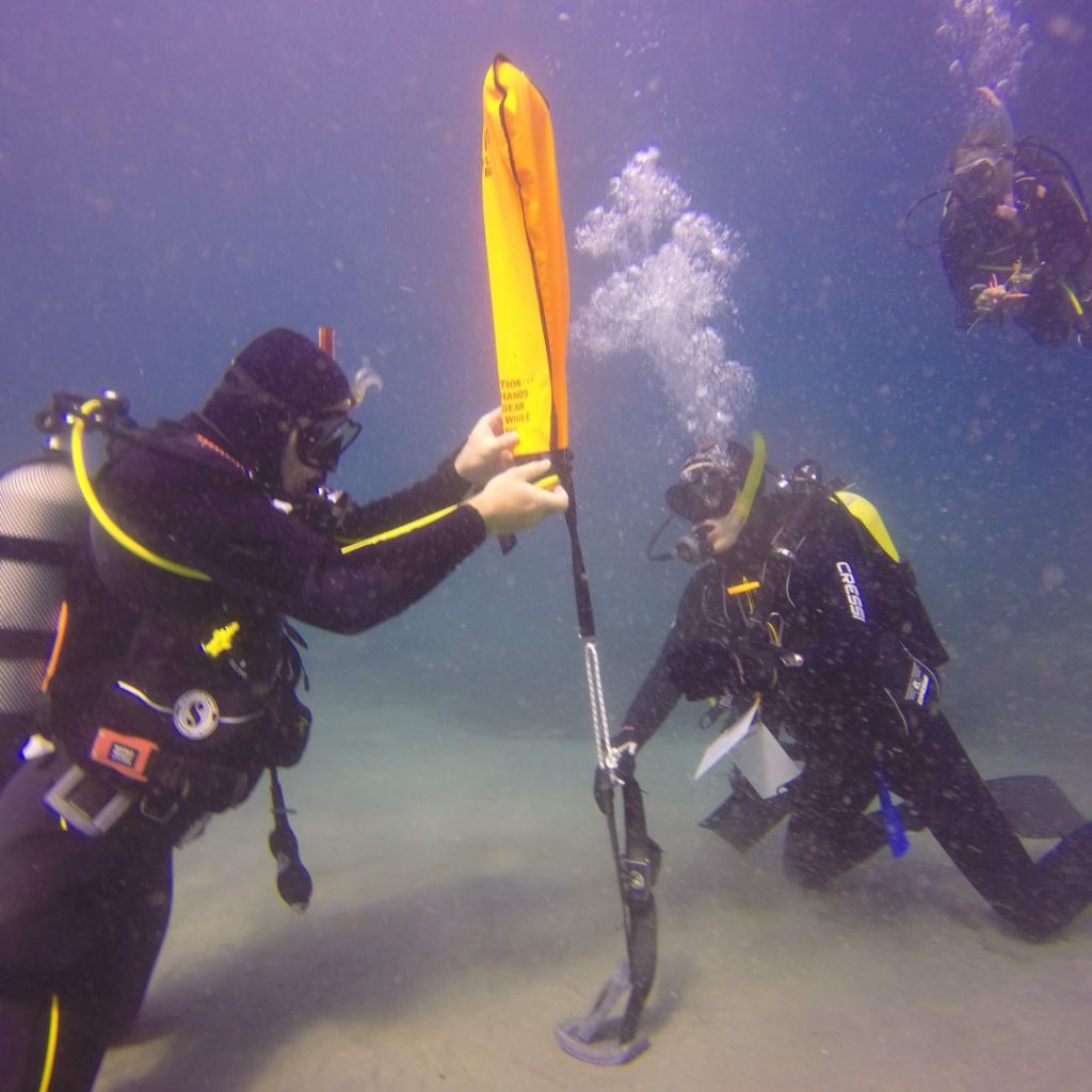 Surface marker buoys (SMBs) allow scuba divers to mark boundaries for mapping or search and recovery, alert boat traffic, or provide a line as a visual reference for ascending divers. During two dives, you learn the proper techniques and protocols for using different types of surface marker buoys and delayed surface marker buoys (DSMBs). Theory is covered in a classroom session.